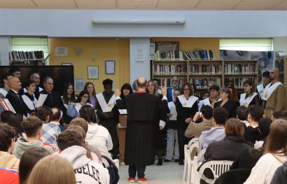 El “Nombramiento de Profesor Honorífico” en el Profesor Domínguez Ortiz es una de las tradiciones rescatadas por el Aula-Museo de este Instituto Histórico de Castilla-La Mancha. Su responsable, Miguel Mayoral, fue el encargado de conducir el acto de nombramiento en el que acompañaron a Belén Lozano integrantes del Claustro de Profesores ataviados con la vestimenta académica de estos docentes en el siglo XIX.
