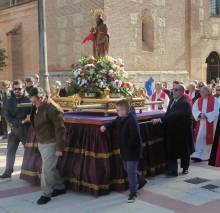 Luego, una vez que San Blas regresó al templo parroquial, comenzó la Misa Mayor cantada, en un templo que se llenó para la ocasión. La ceremonia religiosa estuvo concelebrada por cinco sacerdotes, y el sermón corrió a cargo de un párroco invitado, el azudense Eugenio Abad Vega. Estos actos religiosos contaron con la presencia de muchos representantes institucionales.
