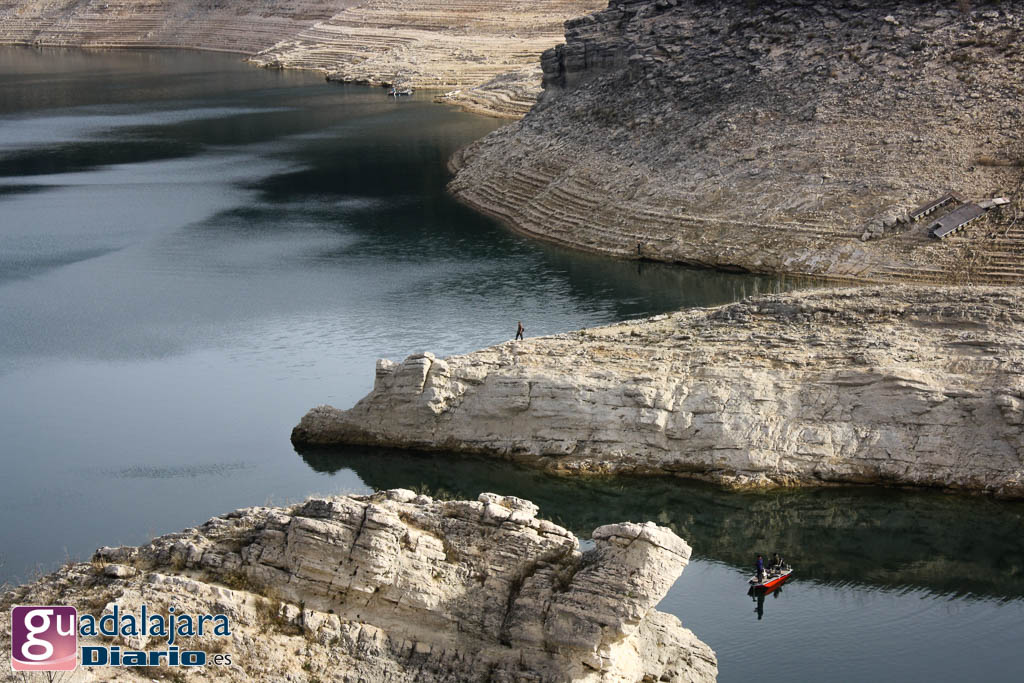 El embarcadero de Sacedón se ha trasladado varias veces y ahora está ya en la Boca del Infierno. La sequía sigue inclemente con los pantanos de Guadalajara, que están al 15,7% de su capacidad, y especialmente a la cabecera del Tajo (Entrepeñas y Buendía), donde la servidumbre del trasvase Tajo-Segura agrava la situación. GALERÍA DE IMÁGENES EN EL INTERIOR.