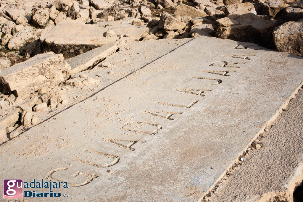 Placa con la inscripción "A Guadalajara 5..." que había en una vieja casa de peones camineros en la antigua carretera Guadalajara-Sacedón-Cuenca.