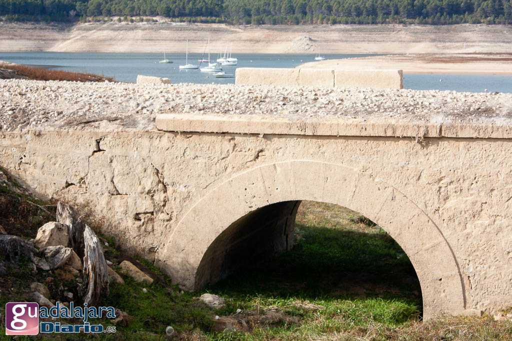 Este fin de semana hemos recorrido las entrañas de Entrepeñas y hemos encontrado viejos puentes sobre el río Tajo, edificaciones de obra de cuando se construyó la presa, chozos de piedra de pastores con la piedra desgastada por el agua, restos de antiguas huertas, casas de peones camineros con losas que informan de la distancia a Guadalajara, troncos de árboles podridos... Hasta la zona del viaducto de Durón, que vuelve a dejar al descubierto el antiguo puente sonbre el Tajo, el pantano ha desaparecido por completo y solo queda el antiguo cauce del río. Desde allí hasta la presa es cuando empieza a notarse que estamos en un embalse, aunque las paredes de los antiguos barrancos están descarnadas y han adquirido un color blanquecino por el agua que hace tiempo se retiró.