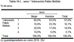 En el caso de Pablo Bellido, el 73,2% le puntúan por debajo de 3. Por grupos de edades, consigue su peor valoración entre los menores de 44 años y la mejor en el arco de los mayores de 45.