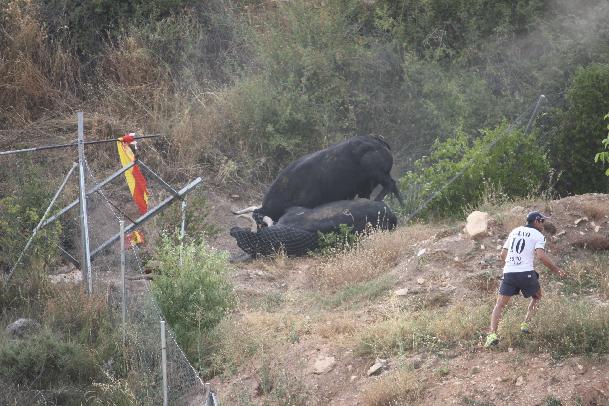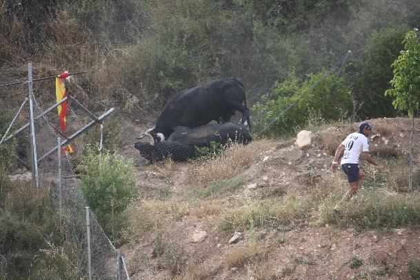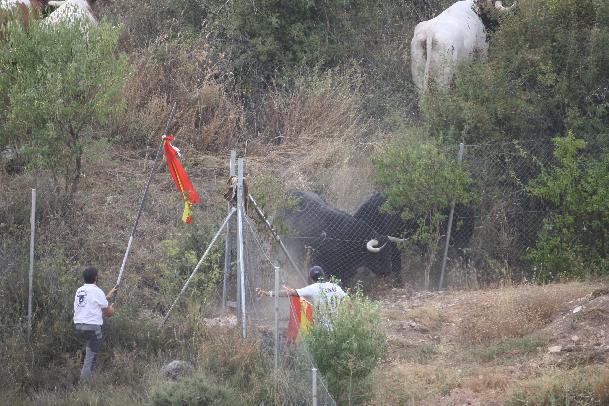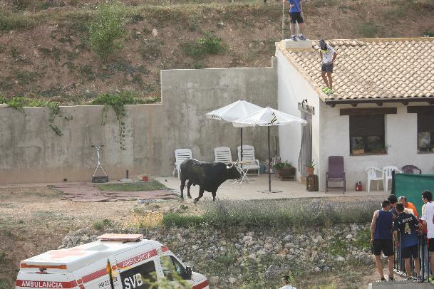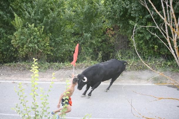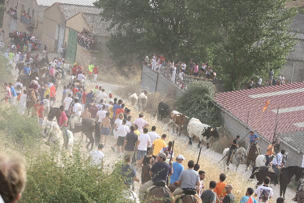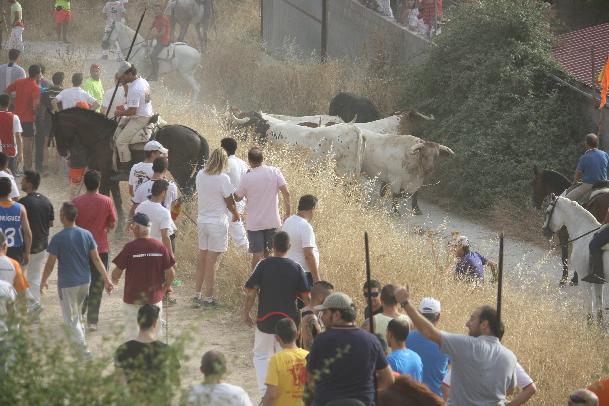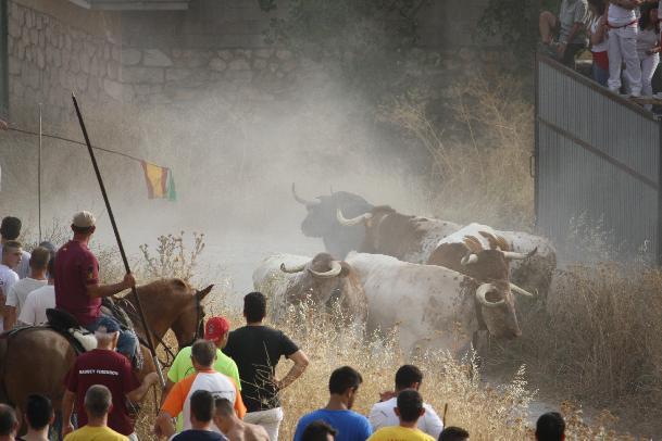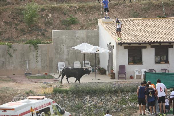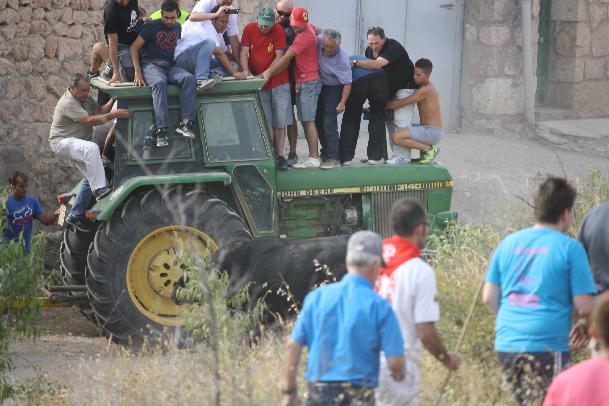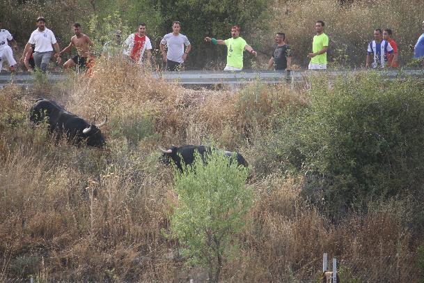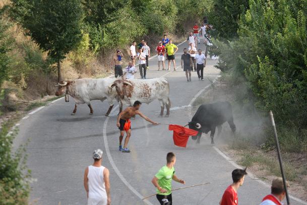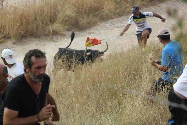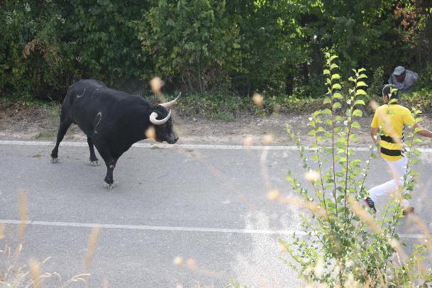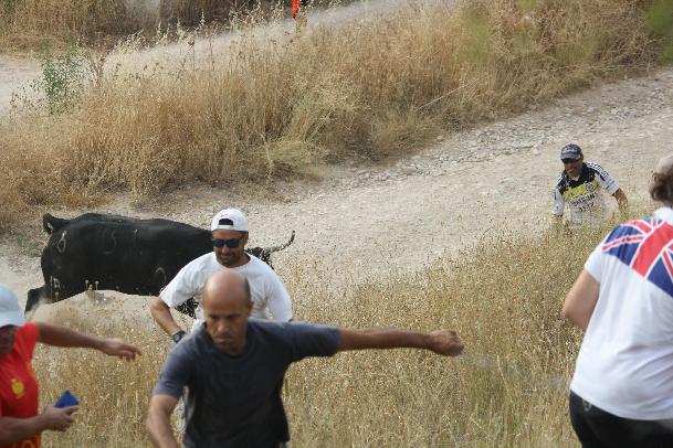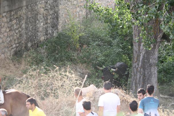 Fueron estos dos toros los que dejaron los momentos más emocionantes. Y también los que provocaron la mayoría de los heridos. La situación más peligrosa se vivió junto a una de las últimas naves cuando un veterano mozo arriesgó demasiado al tratar de citarlo con una bandera, y toro y corredor acabaron en un zarzal. El toro se revolvió y le tiró varios viajes, aunque afortunadamente ninguno de ellos fue fatal. Al final fue liberado y trasladado por las asistencias hasta el Hospital de Guadalajara.
