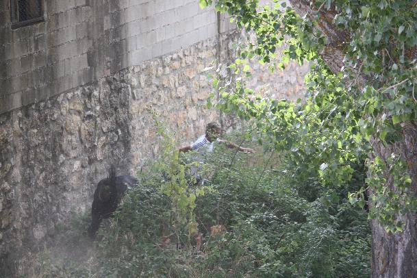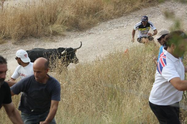 Este corredor protagonizó uno de los momentos más peligrosos del encierro. El toro le siguió y acabaron ambos en un zarzal./ Guadalajara Diario.Según ha informado la Cruz Roja de Guadalajara en su cuenta oficial de Twitter a últimas horas de la tarde, el balance provisional del festejo taurino ha requerido un total de 21 atenciones de los facultativos sanitarios, habiendo sido trasladados cuatro de ellos al centro hospitalario, dos por cornada.