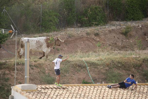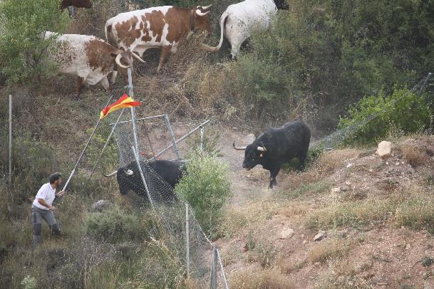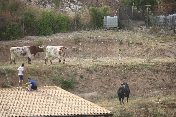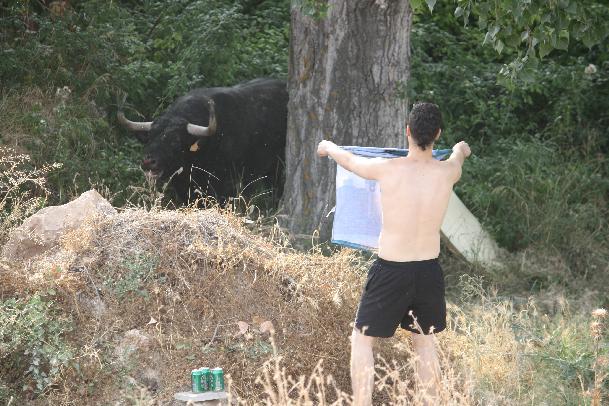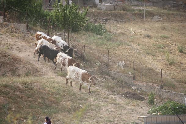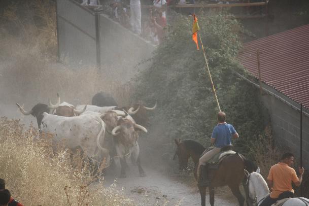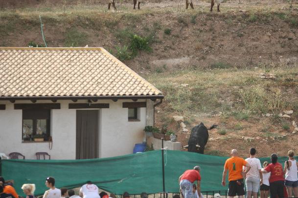 A las tres de la mañana, había un toro cerca del monolito de la batalla de Villaviciosa, que no había manera de hacerlo bajar. Y otro más al final de las naves del pueblo. En los corrales de San Felipe de encerró a un tercero, que acabó muriendo allí, y otro más que llegó muy cansado, con lo que su particiapación en la Bajada de hoy es muy complicada.