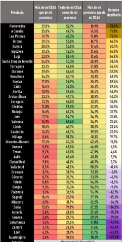 Las provincias que tienen menos arraigado el sentido provincial son las gallegas, las catalanas y las vascas, siempre según la citada encuesta.