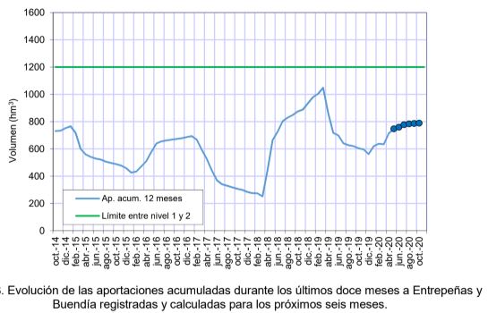 El informe de situación, elaborado por el CEDEX y tomado en consideración por la Comisión indica que, a 1 de mayo de 2020, el volumen embalsado en los embalses de Entrepeñas y Buendía era de 827 hm3, quedando un volumen autorizado pendiente de trasvasar de 83,8 hm3, por lo que resulta un volumen de embalse efectivo de 743,2 hm3, superior al umbral de 645 hm3 que corresponde al límite de situación hidrológica excepcional para el mes de mayo.