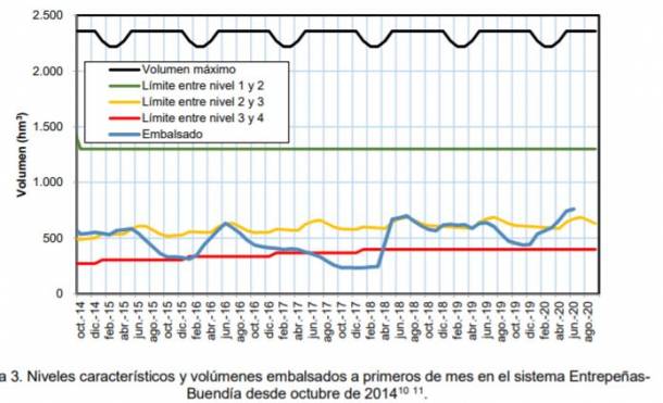 La razón por la que se ha llegado a alcanzar esta situación es doble, añade el informe. En primer lugar, la regla vigente no tomó en consideración las conclusiones del estudio de 2013, en el que se proponía modificar a la baja el volumen de trasvase en nivel 2 y reducirlo a 30 hm3/mes, y se decidió mantener la cifra original de 38 hm3/mes. En segundo lugar, desde que la regla entró en vigor, las aportaciones a los embalses de Entrepeñas y Buendía han experimentado un notable descenso. La combinación de ambos factores –inadecuada cifra de partida y desfavorable evolución hidrológica de los últimos años- ha dado lugar a esta elevada ocurrencia de situaciones excepcionales en la explotación del trasvase.