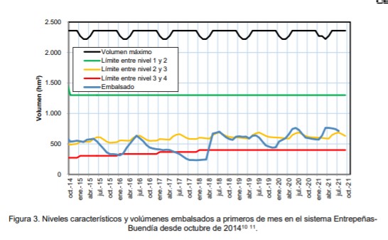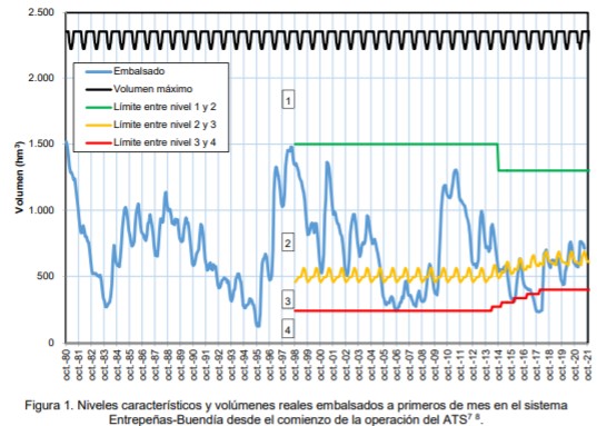 El informe de situación, elaborado por el CEDEX y tomado en consideración por la Comisión indica que, a 1 de julio de 2021, el volumen embalsado en Entrepeñas y Buendía era de 767,7 hm3, y quedando un volumen autorizado pendiente de enviar de 55,0 hm3, por lo que el volumen de embalse efectivo era de 712,7 hm3, superior al umbral de 688 hm3 que corresponde al límite de situación hidrológica excepcional para el mes de julio. Por tanto, el sistema se sitúa en el denominado nivel 2 y debe autorizarse, en aplicación automática de la norma vigente, un trasvase de 38 hm3, si bien la propia Comisión está reconociendo que en agosto mentrará en nivel 3, situación excepcional, con lo que ya no podría hacerlo.