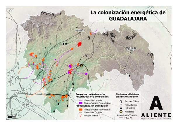 En el caso de Guadalajara denuncian que la provincia está sufriendo una auténtica avalancha de proyectos de mega plantas (llegando algunos a ocupar más de 500 hectáreas), y que la Junta de Comunidades lo está tramitando “sin atender a las alegaciones más importantes que están presentando organizaciones ambientalistas, plataformas vecinales e incluso ayuntamientos. Parece haber optado por un modelo de desarrollo que pone el territorio en manos de intereses ajenos, como si la principal función de la provincia fuese servir de colonia energética para Madrid. Mientras, nuestros pueblos languidecen por falta de servicios, trabajo e innovación”-afirman en un comunicado.
