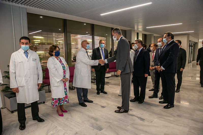 Los Reyes llegaban al nuevo edificio en torno a las 11.30 de la mañana. Tras el saludo a diversas autoridades locales, regionales y provinciales, han recibido una pequeña explicación sobre el nuevo hospital y han pasado a posar junto a la placa que da fe de la visita real y de la inauguración. Tras el posado ante los fotógrafos, sus Majestades han recorrido algunas zonas del edificio.