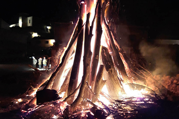 Junto al fuego se juntan todos, absolutamente todos. No falta nadie. Villancicos, risas, algún que otro trago, ya sea de vino o de anís. Mayores, niños y pequeños. Convivencia. La propia preparación de las hogueras es una tradición, una fiesta en sí. En Saelices de la Sal, María Sotoca, recuerda que “de pequeños, casi un mes antes, los adultos subían al monte a cortar chaparros. Los niños y niñas íbamos con una carretilla pidiendo leña, támaras o maderas por cada puerta”.