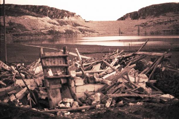 Última foto de Alcorlo antes de ser anegado por las aguas y del derribo de sus casas. /LUIS BARRA (Archivo de Flores y Abejas).