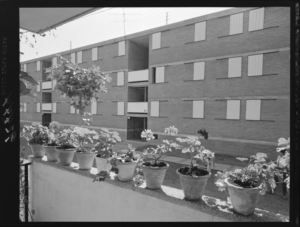 Así, se construyeron una serie de bloques junto a la carretera de Villanueva, alrededor de la actual Plaza de los Girasoles. Juan Pando lo documenta con una serie de fotografías que llevan por título “Viviendas de los obreros en Azuqueca (bloque de viviendas de cuatro plantas con balcón al exterior”.