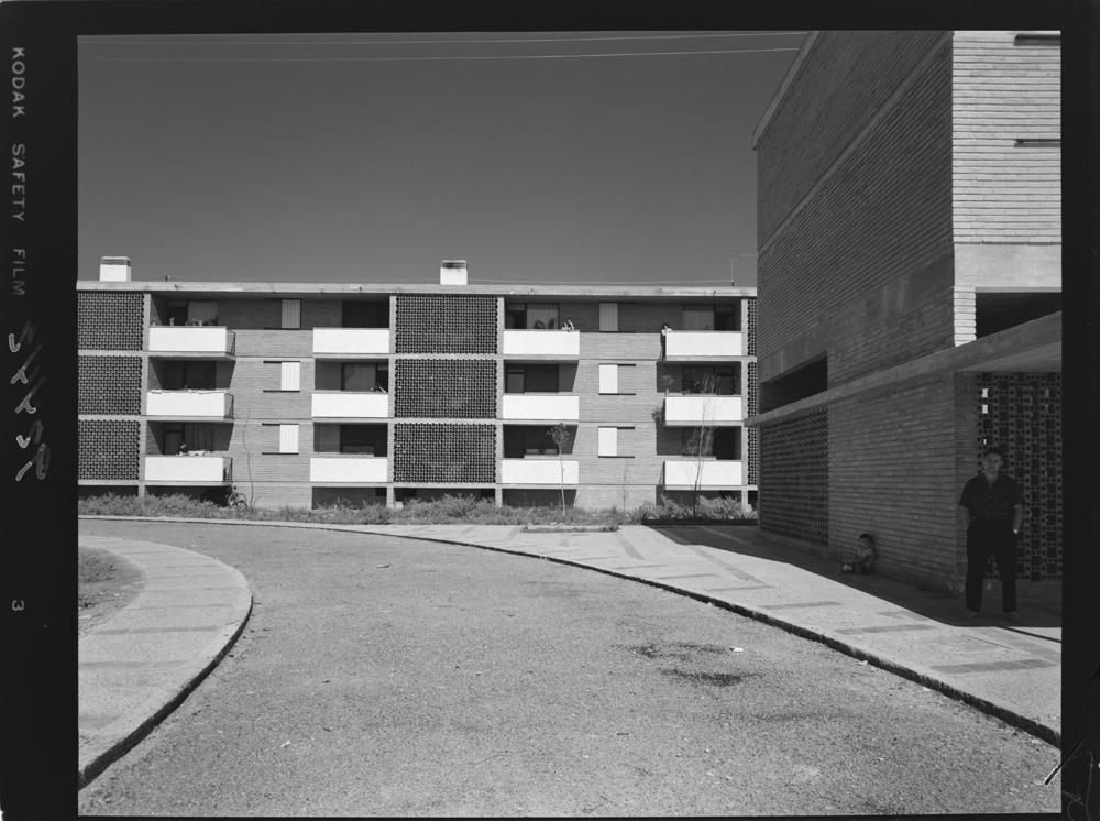 Son un total de ocho imágenes que datan de finales de septiembre de 1963. Resumen una época de la historia española, el desarrollismo industrial. Bloques levantados en pleno campo que hoy forman parte del entramado urbano azudense. En una de ellas se ve el interior de un establecimiento comercial repleto de productos. Quizá de ahí salió el apelativo con el que, durante muchos años, se conoció a la zona, el barrio de “El Economato”.