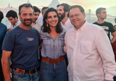 Josué del Barrio, a la derecha, junto a Rocío Monasterio y Javier Toquero en un acto celebrado el año pasado por Vox/ Twitter Josué del Barrio