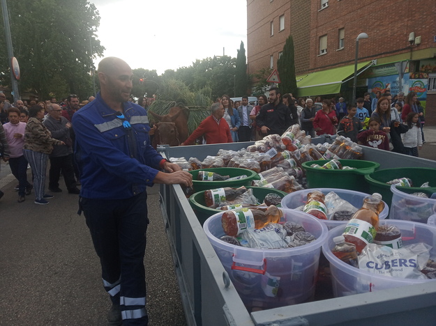 Una vez finalizado el recorrido por distintos puntos de la localidad, la comitiva llegó al parque de La Ermita, donde se repartieron las espigas para entregarlas a las personas más queridas. A continuación, se ofreció una degustación de migas, elaboradas por la Casa de Extremadura de Azuqueca. La agrupación extremeña preparó una gran sartén, junto a la propia Ermita, en la que cocinó 250 kilos de este manjar tan tradicional.