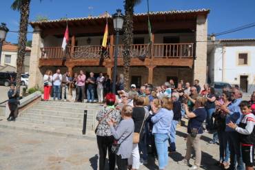 Foto de la plaza del Ayuntamiento de Chiloeches que reunió a más de 100 personas y numerosos medios de comunicación. Foto: Guadalajaradiario