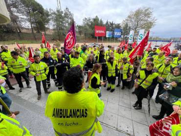 Unos 250 trabajadores del transporte sanitario, segun cifras de los sindicatos, se han concentrado hoy a las puertas del Hospital de Guadalajara para protestar por el bloqueo de la negociación del Convenio regional de Transporte Sanitario y por la insuficiente dotación económica por parte del Sescam, unas movilizaciones que cuentan con el respaldo de los sindicatos CC.OO y UGT.