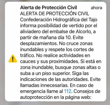 El domingo 9 de marzo, se recibió información de la Confederación Hidrográfica del Tajo, sobre el aumento en el caudal desembalsado en varias presas. Indicándose, con respecto al embalse de Alcorlo (Guadalajara), de la posibilidad de realización de un vertido por el aliviadero en lámina libre de presa, gradualmente a partir de la mañana del lunes 10 de marzo.