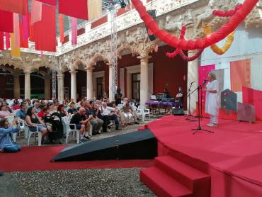 El Patio de los Leones engalanado y preparado para mantener la sombra.El programa incluye las actividades habituales como el Maratón Viajero, que ya se está desarrollando desde hace unos días y llega a 16 pueblos de la provincia; la Palabra Viajera, a la que se incorpora este año la Asociación de padres de niños autistas (Apanag); y las Narradoras Inauditas, con seis mujeres procedentes de Chile, Argentina, Francia, Extremadura, País Vasco y Comunidad Valenciana.