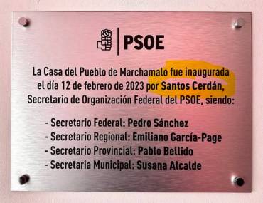 Dicho, aprobado y hecho... La sede de la Casa del Pueblo de Marchamalo ya no luce la placa conmemorativa de la inauguración el doce de febrero de 2023 y donde el principal nombre que figuraba era el de Santos Cerdán que al efecto acudió como Secretario de Organización Federal del PSOE.