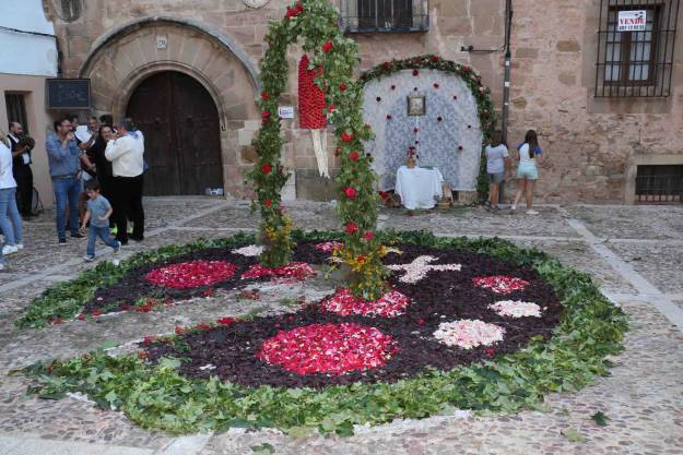 Con ramas de chopo recolectadas en la tarde anterior y la mañana de vísperas de San Juan, y rosas, los seguntinos comienzan a construir sus arcos desde bien temprano. Junto a las estructuras florales, presididas por imágenes de San Juan conservadas desde hace generaciones, no falta la tradicional mesa decorada con cantueso y otras hierbas aromáticas.