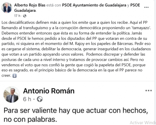 Uno de los choques más llamativos es el protagonizado por dos ex alcaldes de la ciudad y actuales diputados nacionales por Guadalajara, uno del PSOE, Alberto Rojo, y otro del PP, Antonio Román.