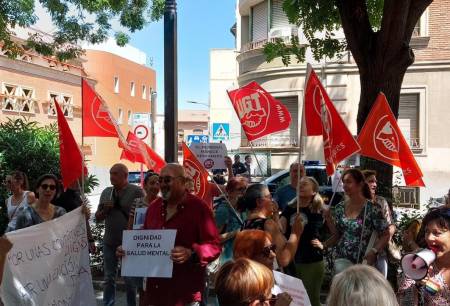 Manifestación ante la delegación de Sanidad/ UGTPero no es el único problema. Según UGT el centro cuenta con graves deficiencias en las instalaciones que repercuten en la seguridad y en el bienestar de las personas usuarias y trabajadoras. “Ejemplos de estas deficiencias son las frecuentes averías del ascensor, que obliga al personal a realizar diversas tareas de manera manual (reparto de bandejas de comidas, productos de limpieza…), con el consiguiente riesgo de lesiones por manipulación de cargas. El agua caliente también falla con frecuencia, dificultando la higiene personal de pacientes y del personal. Y la secadora y una de las lavadoras llevan semanas averiadas, afectando gravemente al servicio de lavandería, fundamental en un entorno hospitalario”.- señalan en un comunicado.