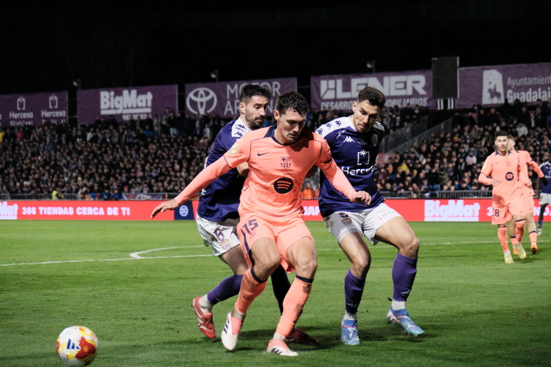 El Deportivo Guadalajara no se dejó cegar por el brillo de las estrellas. Es más, las miró a la cara, directamente. En una noche mágica el Dépor sostuvo el pulso a uno de los mejores equipos del mundo, el FC Barcelona, al que obligó a forzar la máquina para pasar de ronda en esta Copa del Rey. Los blaugranas solo pudieron superar al Dépor en la recta final del encuentro, con goles de Christensen y Rashford. El equipo de Pere Martí dio toda una lección de esfuerzo, orden y compromiso defensivo dejando bien el alto el pabellón alcarreño.