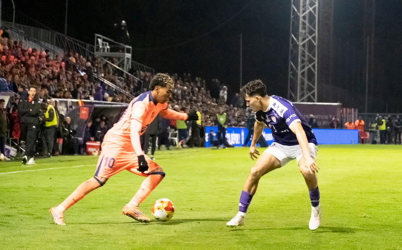 Con una disciplina espartana, la organizada defensa morada le negaba los espacios a un Barcelona que insistía una y otra vez. Especialmente llamativo fue el caso de Lamine Yamal, al que le encimaba una jauría de defensas morados en cuanto recibía el balón. En la punta contraria, al Dépor le duraba poco el balón, pero algo sacaba: un disparo lejano de Manu Ramírez, una contra forzada de Cañizo...