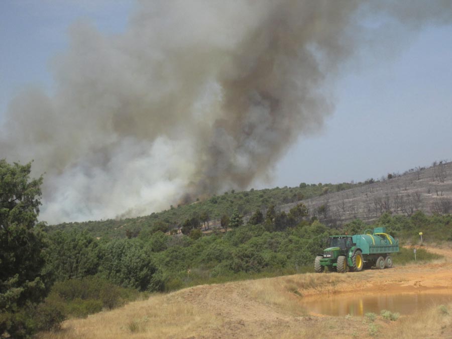 - El fuego de Aleas lo provocó una cosechadora y está controlado y cerca de su extinción