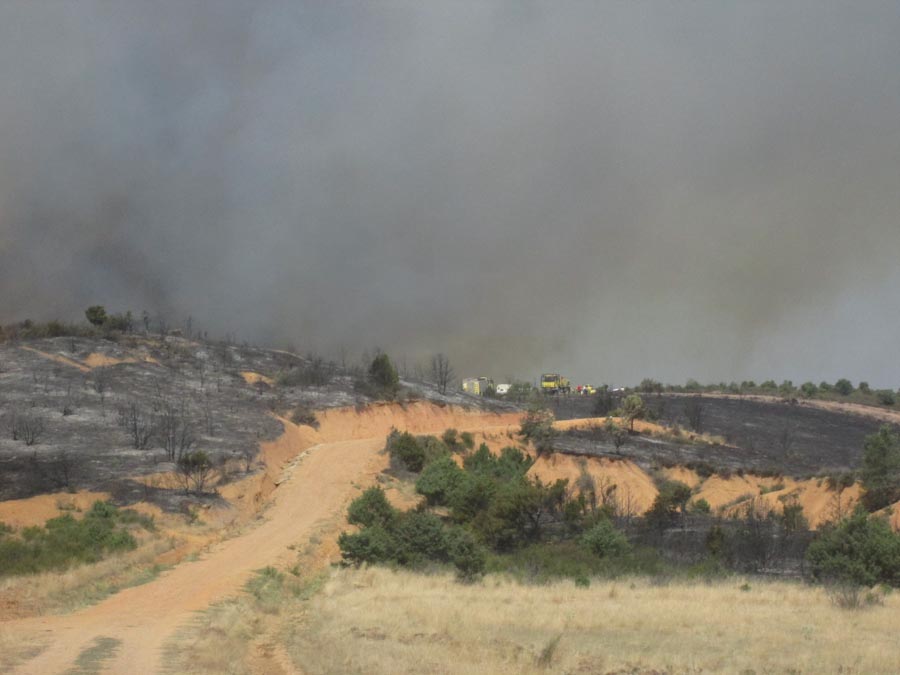 El incendio se Aleas se ha vuelto a reavivar, y según las últimas informacionesque nos llegan desde el terreno, que todavía no son oficiales, las llamas se han descontrolado y han saltado hacia el pinar, y van en direccióno de Muriel en la cuenca del Sorbe. Es la posibilidad que más se temía ayer cuando el perímetro acotado dejó fuera al citado pinar. La web de la Consejería de Agricultura, a las 15,15 informaba que se ha vuelto a declarar el nivel 2, lo que significa que se solicita ayuda externa a la de la propia consejería de Agricultura. En concreto, se cita que se ha reclamado que vuelva la Unidad Militar de Emergencias (UME), que estuvo trabajando ayer hasta que el incendio remitió. A esa hora trabajaban 17 medios y 64 personas, de ellos 6 aéreos y con una dotación de 30 personas.