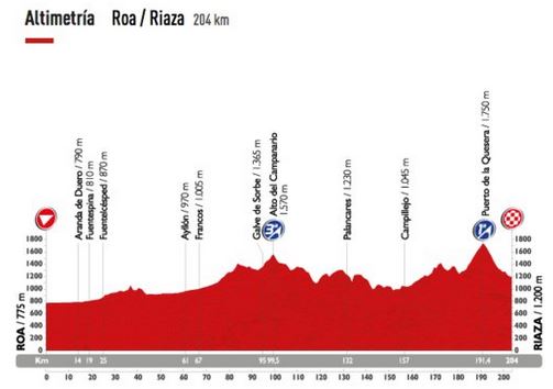 Se trata de decimooctava etapa, que se iniciará en Roa (Burgos) y terminará después de recorrer 204 kilómetros en Riaza (Segovia). El accidente principal de la carrera será el puerto de la Quesera, de 1.750 metros, que la organización lo ha declarado de 1ª Categoría, una estrecha y pronunciada carretera de alta montaña que une los municipios de Majaelrayo (Guadalajara) con el de Riaza, ya en Segovia.