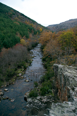 Cuesta trabajo creer que este joven Sorbe, apenas un aprendiz de río, que a duras penas se abre camino entre los agrestes barrancos abrazados a la sierra de Ayllón, sea capaz de suministrar agua a todo el Corredor del Henares y a la ciudad de Alcalá. Eso ocurre en su tramo medio, antes de llegar a Beleña, donde se construyó una presa para recoger sus afamadas aguas, de gran calidad. El caudal constante que sirve el Sorbe se debe a la multitud arroyos, arroyuelos y lechos de agua que corren por valles y laderas de los barrancos del Alto Sorbe hasta toparse con este río. Para esta sonata otoñal, nos dirigimos a uno de esos lugares privilegiados, que ya forma parte de nuestro particular Top Ten entre los lugares de mayor valor paisajístico de la provincia de Guadalajara. Se conoce por la Junta de los Ríos, y la toponimia viene porque allí se junta el Sorbe con el Zarzas, que descarga un agua límpida que ha ido recogiendo de los arroyos que cruzan el hayedo de Tejera Negra. En este paraje ya no hay hayas, pero sí robles, que conviven con pinos jóvenes, árboles de ribera y arbustos, como el brezo, que hacen fatigoso el camino junto al río. Pero merece la pena. El otoño reclama allí la atención.