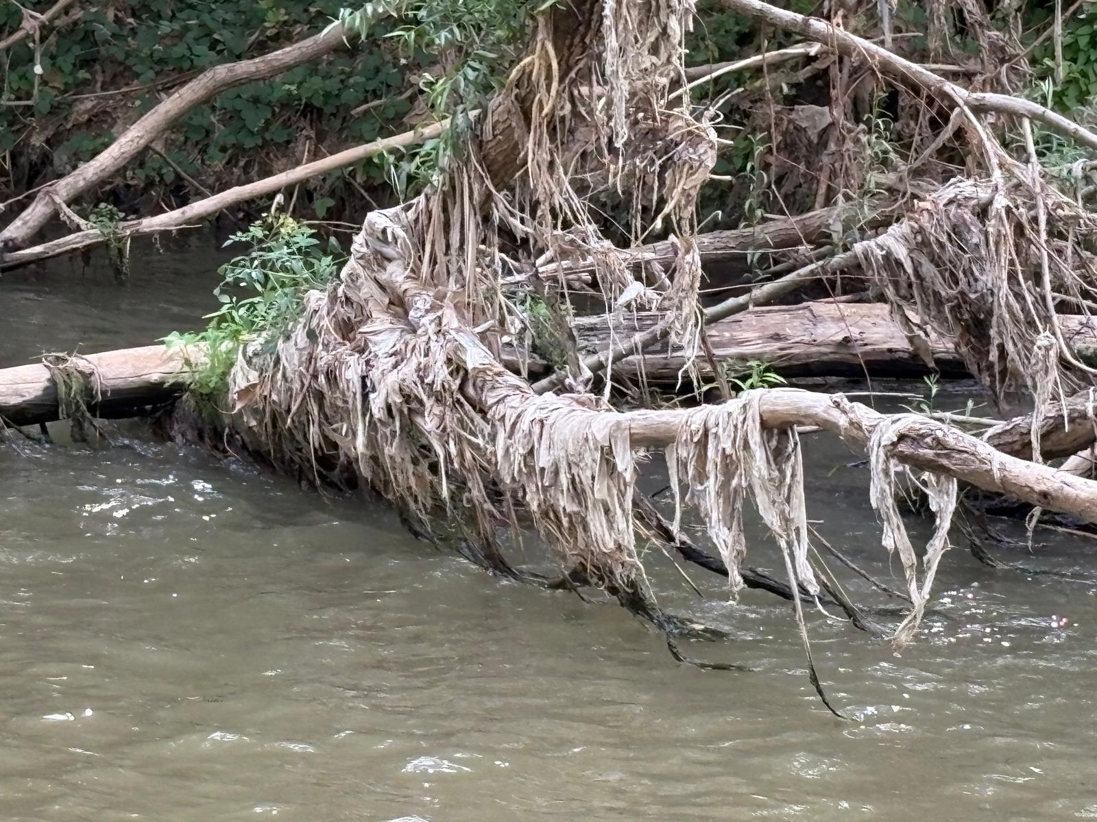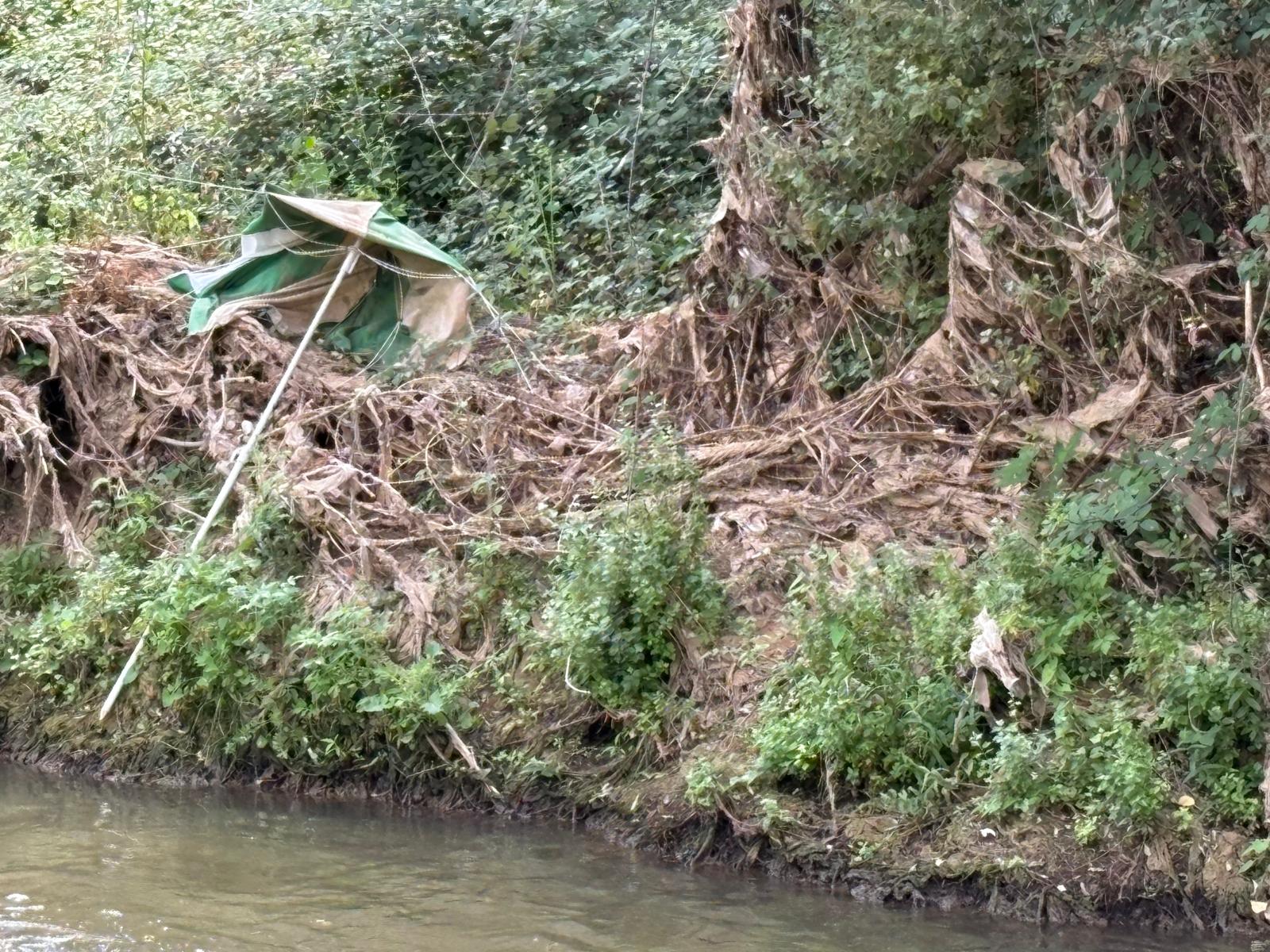 Una limpieza que, sin embargo, en algunos puntos no ha sido suficiente. En demasiados lugares se pueden ver plásticos, trapos y cientos de toallitas colgando de ramas, (altas y bajas de los árboles); también hay restos de cientos de ramas arrastradas por las aguas que han quedado atascadas en las riberas, y basura abandonada como una sombrilla o un antiguo bidón oxidado, elementos a los que su suman los que dejan los usuarios restos de bricks, papel de aluminio y todo tipo de porquería.