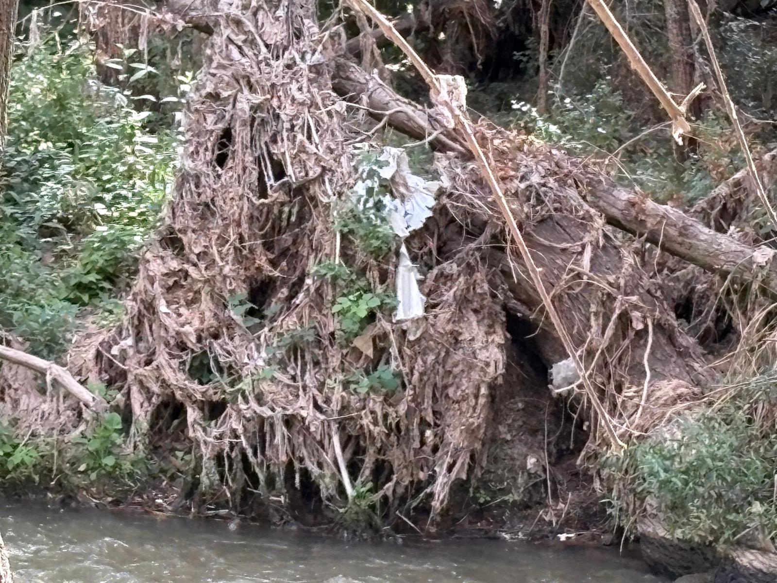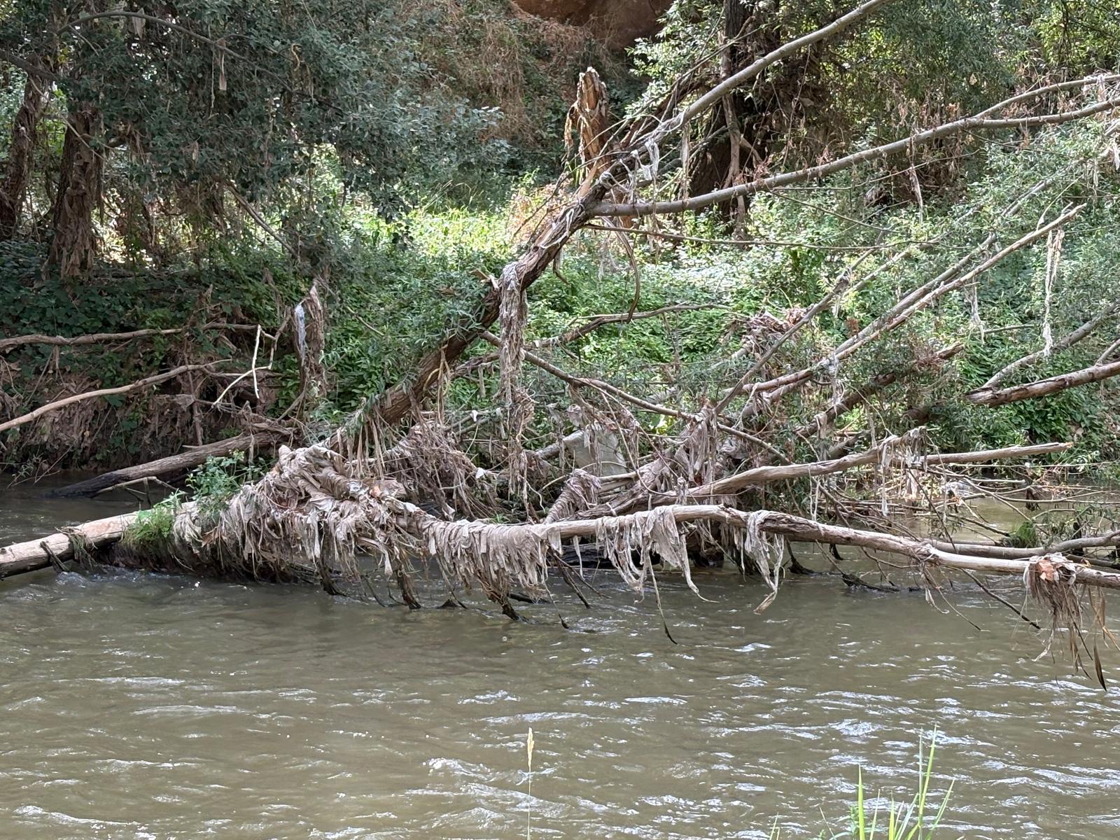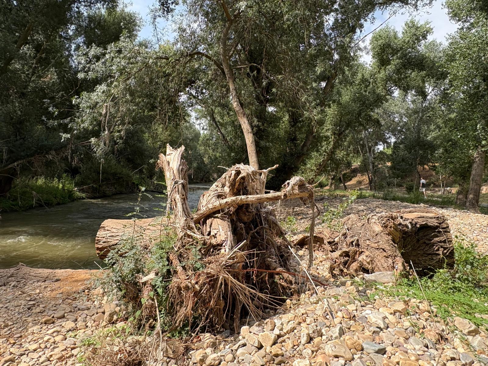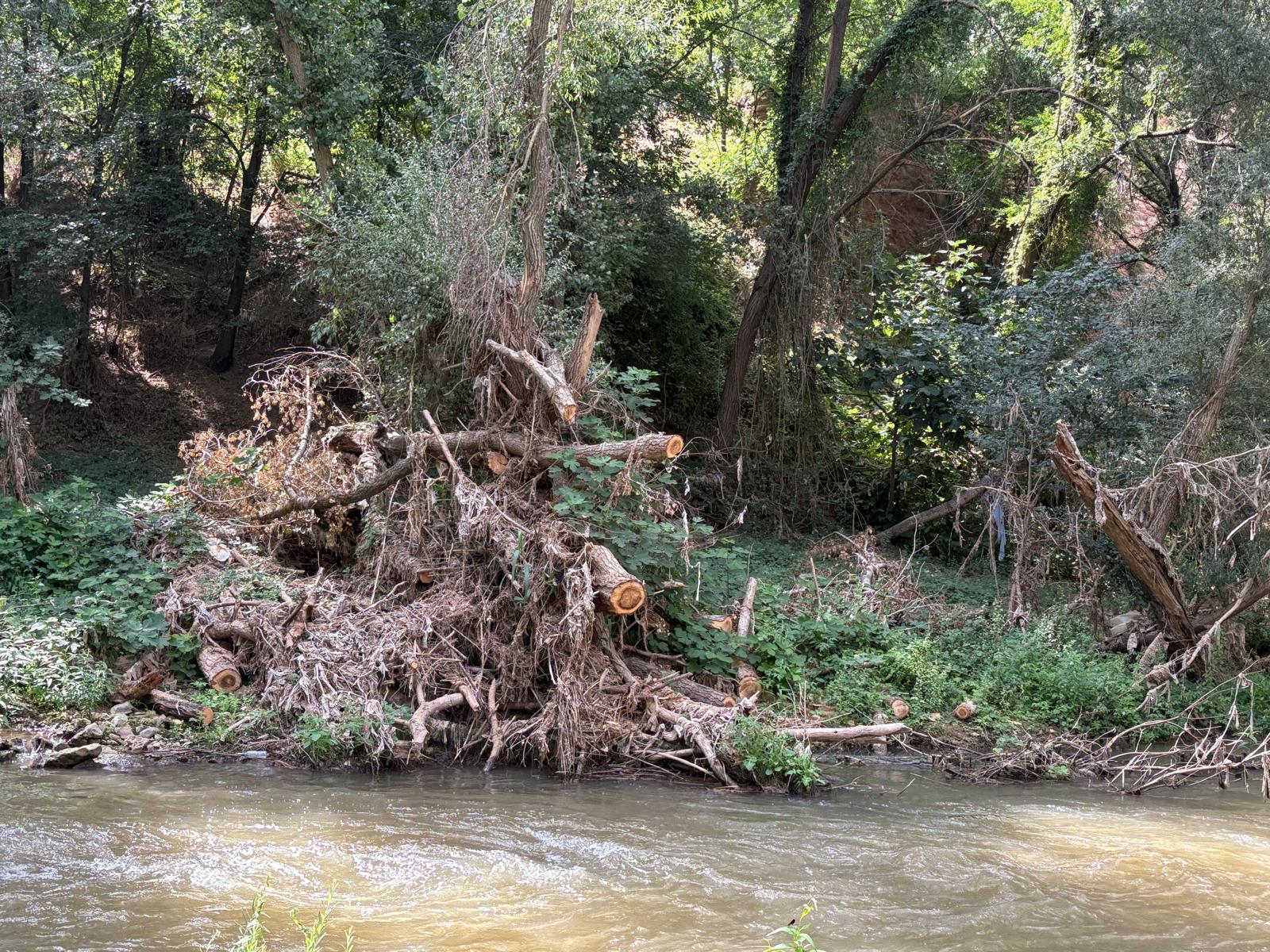 Lo más llamativo es que sigue habiendo restos de árboles en varios puntos del lecho del río. De hecho, un gran árbol que cruzaba el cauce de lado a lado ha sido cortado por el centro mientras que los dos extremos han quedado sin retirar, uno en cada margen. Preguntado sobre el tema el concejal ha señalado que el de la margen derecha no se ha podido retirar “porque es un criadero de fauna” y el del lado izquierdo “porque no llegábamos”.