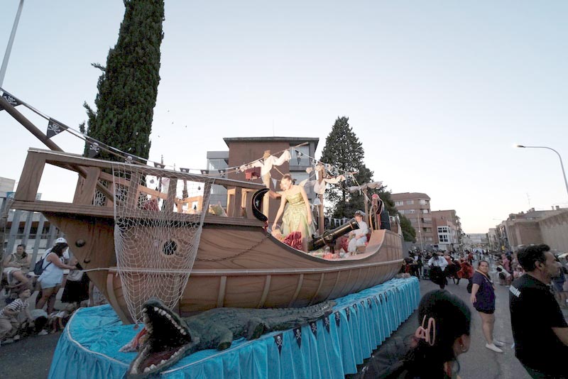 En el orden de desfile el Ayuntamiento informaba que las carrozas 'arrancaban' con la presencia de los maléficos piratas del Capitán Garfio junto a nueve de sus secuaces intentando llevarse en su bajel a los niños y niñas que encontrasen a su paso hasta el 'País de Nunca Jamás'.