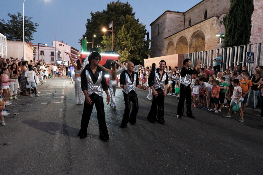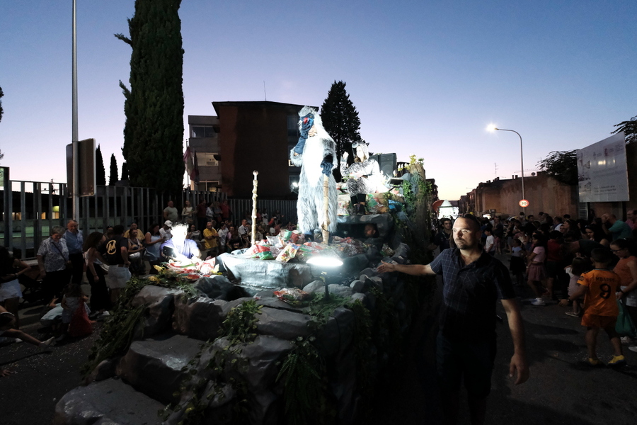 Siete eran las carrozas anunciadas acompañadas con sus comparsas ataviadas al efecto por cada uno de los personajes de sius musicales y por supuesto, los protagonistas de cada uno de ellos.