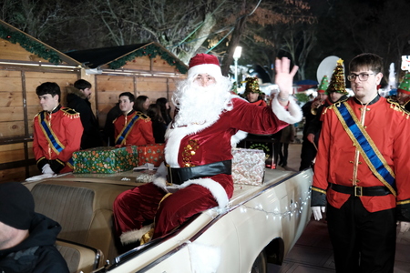 Más modernizado y con estética de los 60, Papá Noel se sentaba en el respaldo trasero del flamante descapotable Cadillac blanco para que todos pudieran saludarlo. El recorrido ha comenzado desde el Paseo de San Roque para terminar en la Plaza Mayor, ante la fachada del Consistorio.