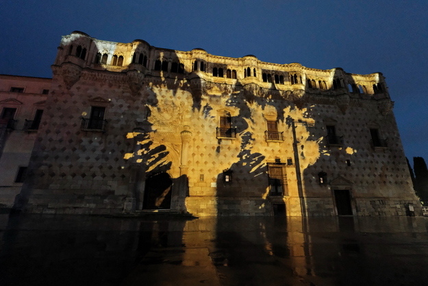 Así su fachada del Palacio del Infantado, terminada prácticamente en el mismo año del Descubrimiento de América por Cristóbal Colón (1492), ha sido el lienzo de esta proyección. Ni su arquitecto Juan Guas hubiera ni siquiera en sus mejores imaginaciones que su obra fuera a ser el principal monumento de Guadalajara y que recibiría tal espectáculo lumínico.