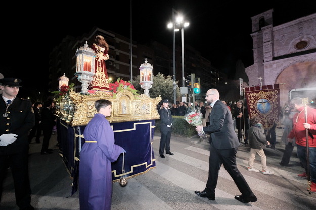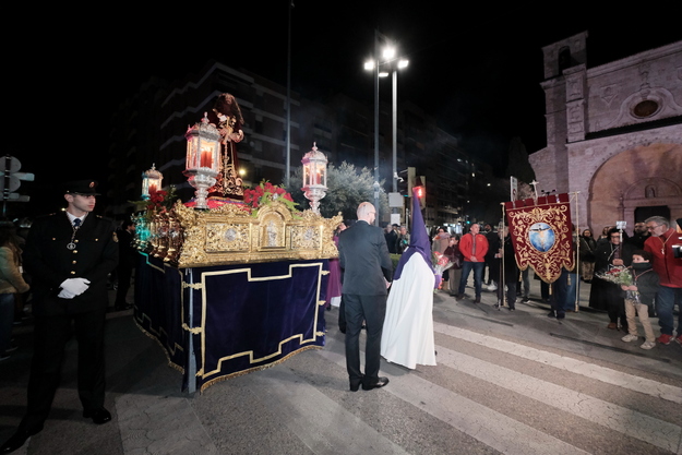 Nada impidió que los cofrades pudiera realizar su recorrido parroquial por el centro de la ciudad para luego subir hacia el parque de La Concordia para realizar la estación penitencial en la puerta principal de la Residencia de Ancianos, y continuar luego por la Virgen del Amparo, plaza de Santo Domingo, hasta regresar a la parroquia por la Calle Mayor.