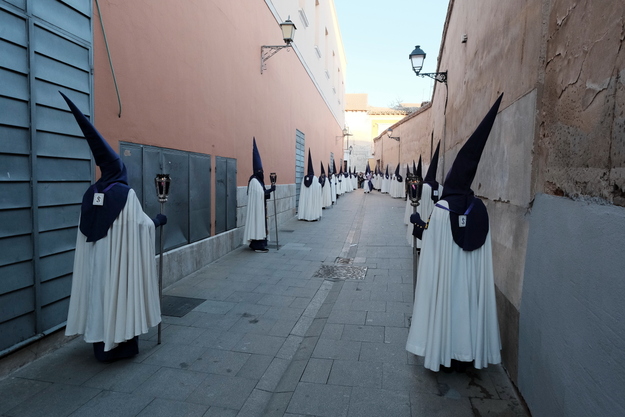 La procesión del Jueves Santo sale a las 11 de la noche y sube por la remodelada calle Miguel Fluiters, Plaza Mayor y Jardinillo, por lo que deben de esperar a que termine de procesionar el paso del Nazareno, que se recoge sobre las doce de la noche en San Nicolás.
