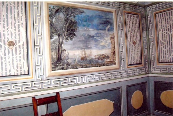 En La Saleta se pueden contemplar 17 pinturas, que reflejan parte de la vida de Jovellanos, desde la añoranza de su Asturias natal a sus ansias de libertad y su prisión en el castillo de Mallorca (en el cuadro de la imagen)